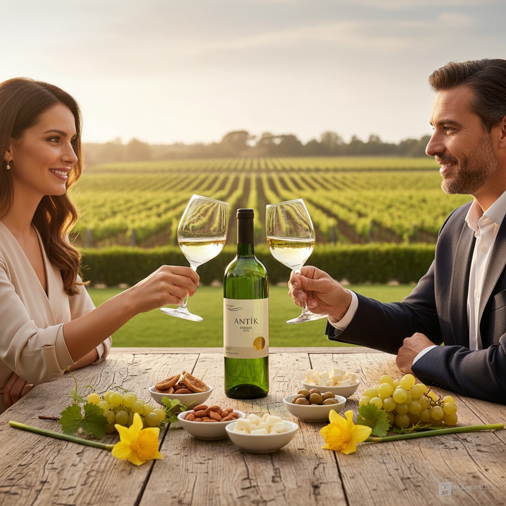 Doluca Antik ist ein sehr bekannter türkischer Wein. Eine perfekte Mischung aus der aromatischen, saftigen Rebsorte „Narince“ und dem kraftvollen, lebendigen „Emir“. Während Narince in Tokat angebaut wird, kommt die Rebsorte Emir aus Kappadokien. In französischen Eichenfässern reift dieser Wein 8 Monate lang zu einem charakteristisch starken, und geschmeidig vollen Körper heran. Umrundet wird das Ganze mit Aromen von Melone, Birne und geröstetem Brot.
