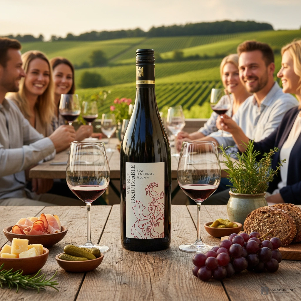Als trockener Rotwein eignet sich der Drautz-Able Lemberger hervorragend als Begleiter zu verschiedenen Speisen. Besonders empfehlenswert ist er zu kräftigen Fleischgerichten, wie gegrilltes Rindfleisch oder Lamm. Auch zu würzigen Pasta-Gerichten oder gereiften Käsesorten kann dieser Wein eine exzellente Figur machen. Die robuste Struktur und die ausgewogene Säure des Weins ermöglichen es, dass er die Aromen der Speisen hervorragend ergänzt und für ein rundes Geschmackserlebnis sorgt.