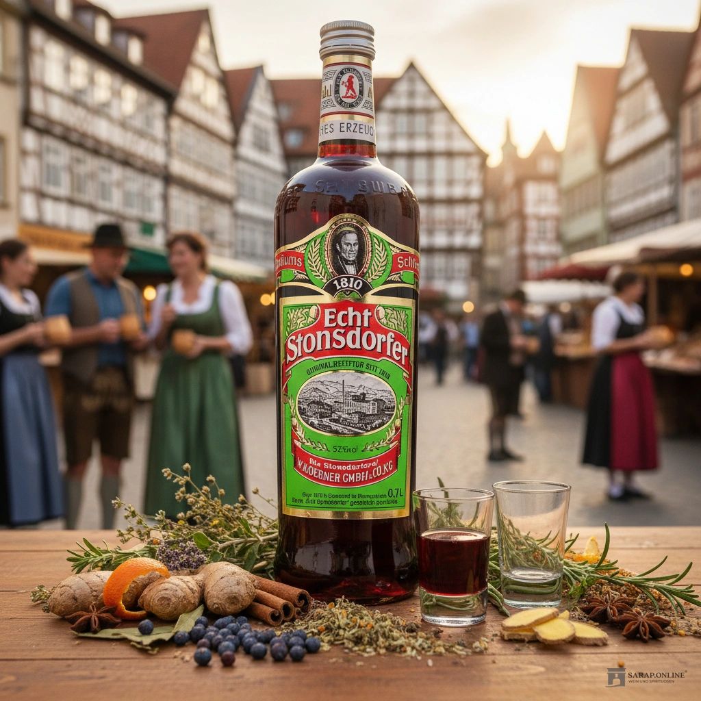 Entdecken Sie den traditionellen Geschmack des „Echt Stonsdorfer“, einem authentischen Kräuterlikör aus Deutschland.