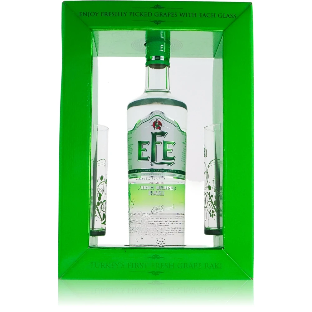 Entdecken Sie den authentischen Geschmack der Türkei mit der Efe Fresh Grape Geschenkverpackung, die speziell für Raki-Liebhaber konzipiert wurde. Diese einzigartige Geschenkverpackung enthält nicht nur eine Flasche des hochgeschätzten Efe Fresh Grape Raki, sondern wird zusätzlich mit zwei eleganten Trinkgläsern geliefert, die das Trinkerlebnis abrunden.