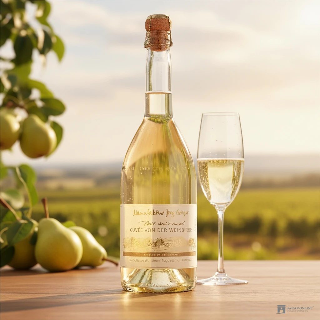 Der Jörg Geiger Cuvee von der Weinbirne besticht durch ein facettenreiches Geschmacksprofil. Bereits beim ersten Schluck entfaltet sich eine elegante Fruchtigkeit, begleitet von einer feinen Säurestruktur, die für Lebendigkeit sorgt. In der Nase verführt er mit einem Bouquet aus zarten Birnennoten und floralen Anklängen. Die Optik überzeugt durch eine klare, leuchtende Farbe und eine feine Perlage, die im Glas tanzt und das Genusserlebnis visuell untermalt.