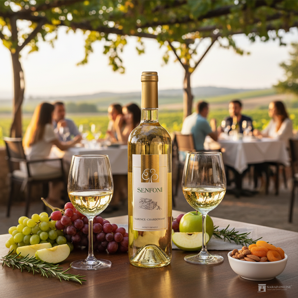 Der Pamukkale Senfoni Narince und Chardonnay ist ein Cuvee aus der authochthonen Rebsorte Narince und der internationalen Rebsorte Chardonnay. Der Wein ist lebendig, mineralisch, fruchtig und frisch. Er biete Aromen von Quitte, Zitrus und Buchsbaum.